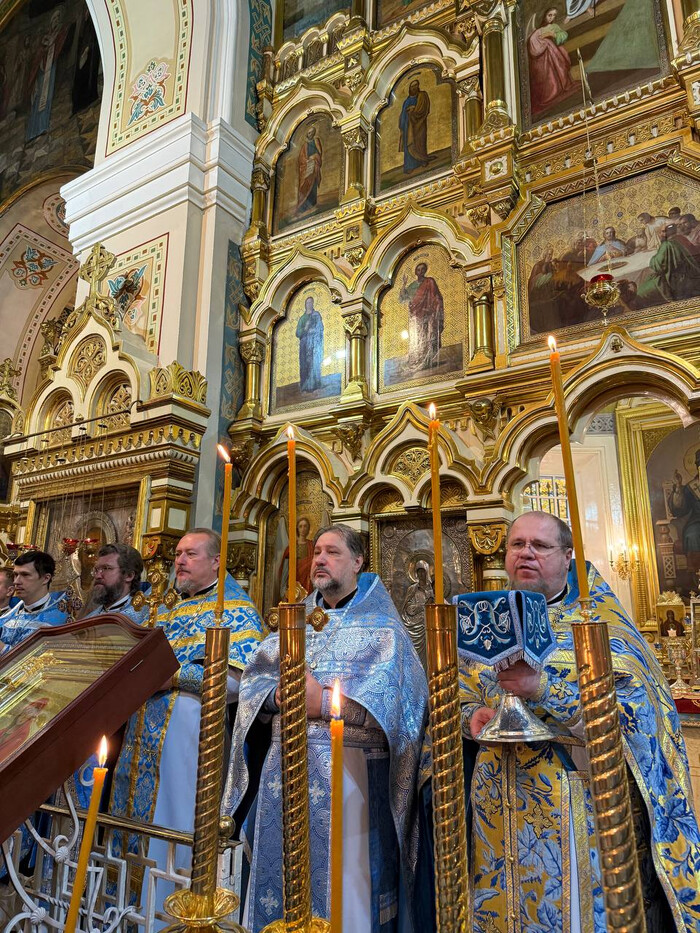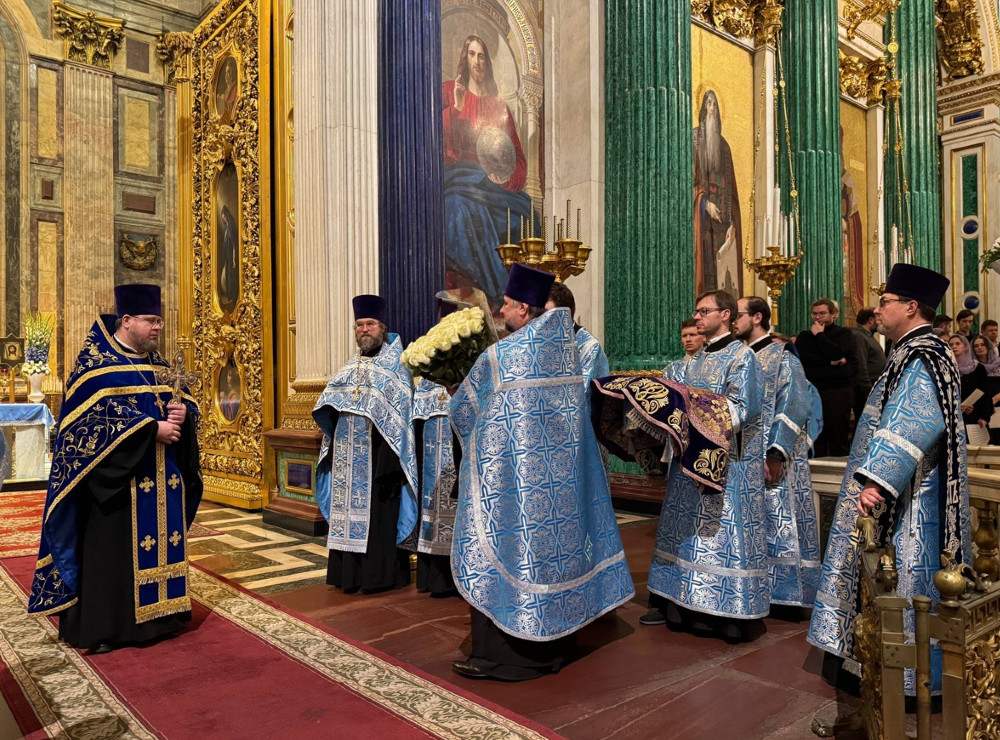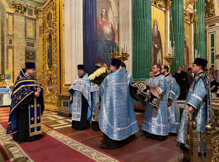В канун праздника протоиерей Роман Ковальский возглавил Всенощное бдение в Исаакиевском соборе.