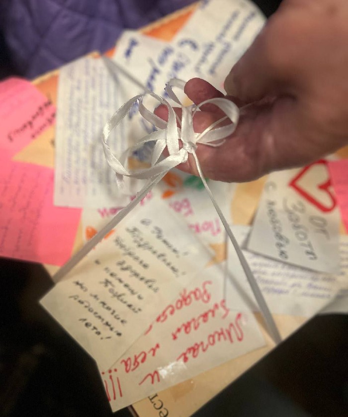 От имени УКЦ "Родник" и воскресной школы именинника поздравила завуч Т. Г. Дуванова. Она прочитала специально написанное к этому дню, посвященное имениннику, стихотворение и преподнесла подарок, под которым стоят подписи учащихся всех классов.