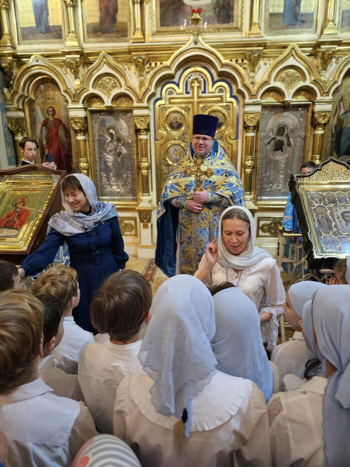По совершении Литургии, праздничного крестного хода, который возглавил благочинный о. Александр, благодарственного молебна и уставного многолетия, к молящимся обратился благочинный протоиерей Александр Будников. Он отметил, что Покров Божией Матери объемлет весь мир и каждого из нас в отдельности. Когда нам трудно, когда казалось бы, надеяться не на что, мы не должны забывать о распростертом над нами Покрове Божией Матери. Если будем молиться к Ней с теплой верой и надеждой, Она никогда не оставит нас в безнадежности, — подчеркнул отец Благочинный. Далее Благочинный кратко рассказал историю праздника Покрова, отметив, что хотя это событие произошло в далекой Византии, в отдаленные от нас времена, праздник этот стал одним из самых любимых праздников русского народа, в котором, как в фокусе, сосредоточилась вся та великая любовь, которую питает наш народ к Преблагой Царице.