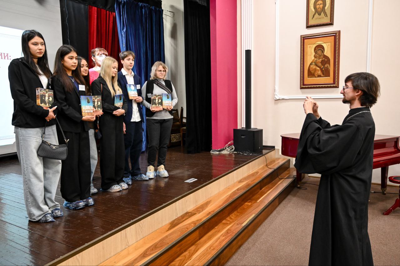 Приятным сюрпризом стали для учащихся подарки от Союза православных предпринимателей: книга Сергея Шарапова, Марины Улыбышевой «Бедность и богатство. Православная этика предпринимательства» и православный календарь.