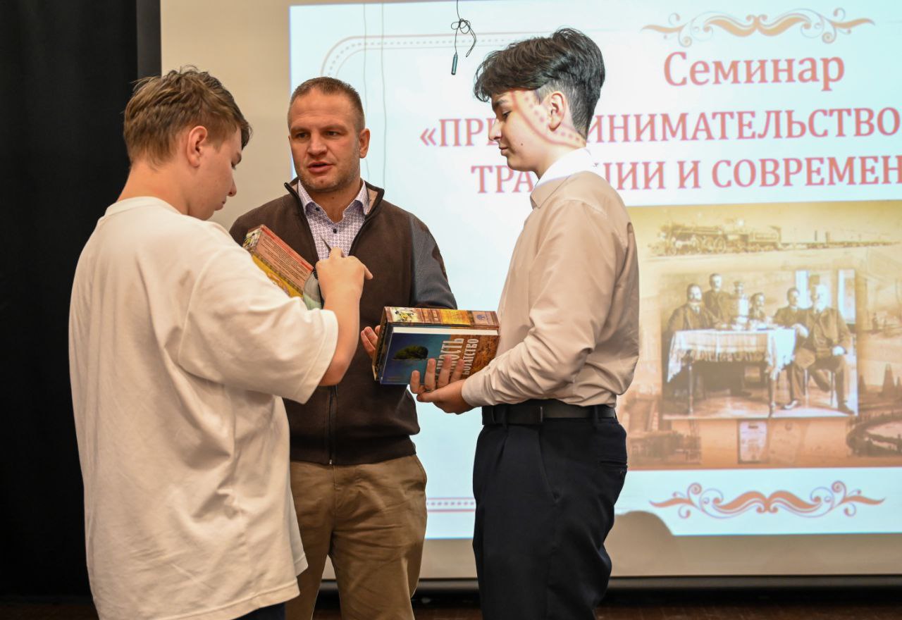 Сергей Тельбухов – член Союза православных предпринимателей, бизнес-куратор проектов «ГрузовичкоФ», «ТаксовичкоФ», SMEKALKA, «Достаевский» поделился со старшеклассниками опытом создания бизнеса и ценностными ориентирами, помогающими в его построении.