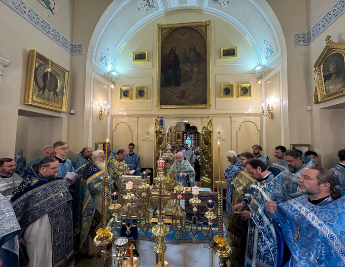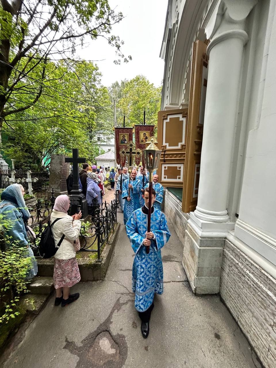 Поздняя Литургия была совершена Соборным служением. Ее возглавил благочинный Выборгского округа отец Александр Будников в сослужении благочинного Приморского округа иеромонаха Александра Ковальского, настоятеля храма, ключаря Исаакиевского собора, настоятеля храма Всех Петербургских Святых на Левашовском мемориальном кладбище протоиерея Романа Ковальского, более двадцати священников и восьми диаконов, в том числе четверых протодиаконов во главе с протодиаконом Николо-Богоявленского собора Константином Марковичем. Прихожане храма не могут вспомнить, когда было подобное стечение духовенства в нашем храме.