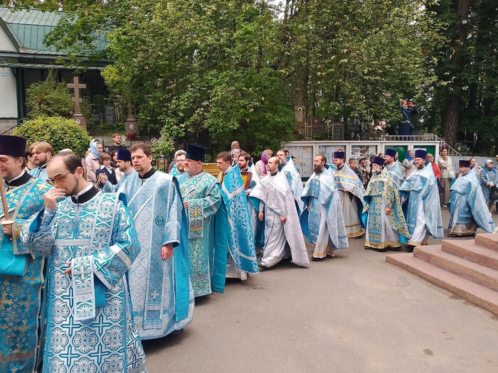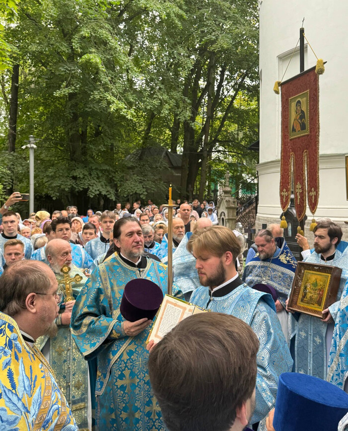 Накануне было совершено торжественное Всенощной бдение, в котором служба Нерукотворному Образу Спасителя была совмещена с чином погребения Божией Матери.