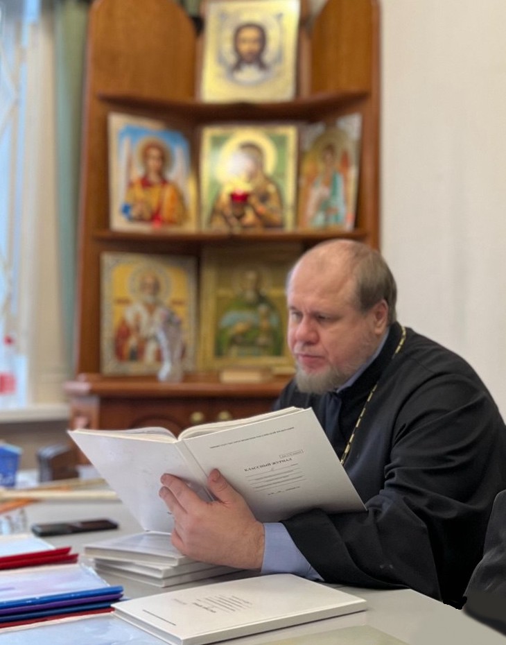 Протоиерей Александр Зелененко, духовник школы, выступил с сообщением о роли родительского участия в процессе обучения. Его выступление затронуло одну из серьезных школьных проблем: недостаточность включенности в процесс обучения и воспитания многих родителей.