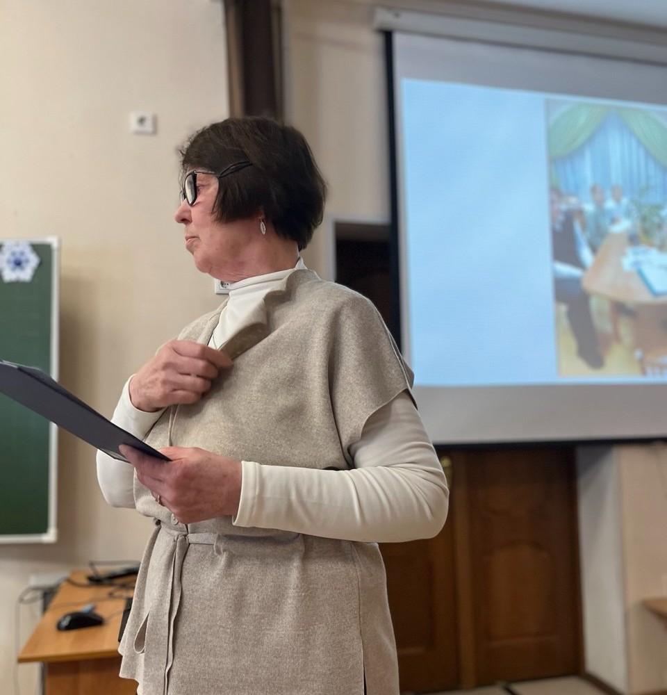 М.Е. Рогова рассказала собравшимся о трудовых буднях богослужебного хора «Парус», проанализировала годовой путь этого славного коллектива. Поделилась интересными фактами из жизни хористов.