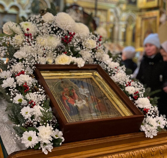 После завершения Литургии на середине храма, перед иконой Рождества Христова, совершается славление — звучат тропарь и кондак, особые торжественные песнопения, посвященные этому великому празднику. В этот день всё наполняется светом и радостью, предвещая приход в мир Спасителя.