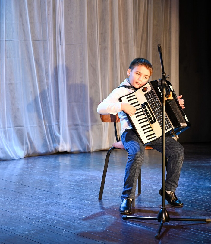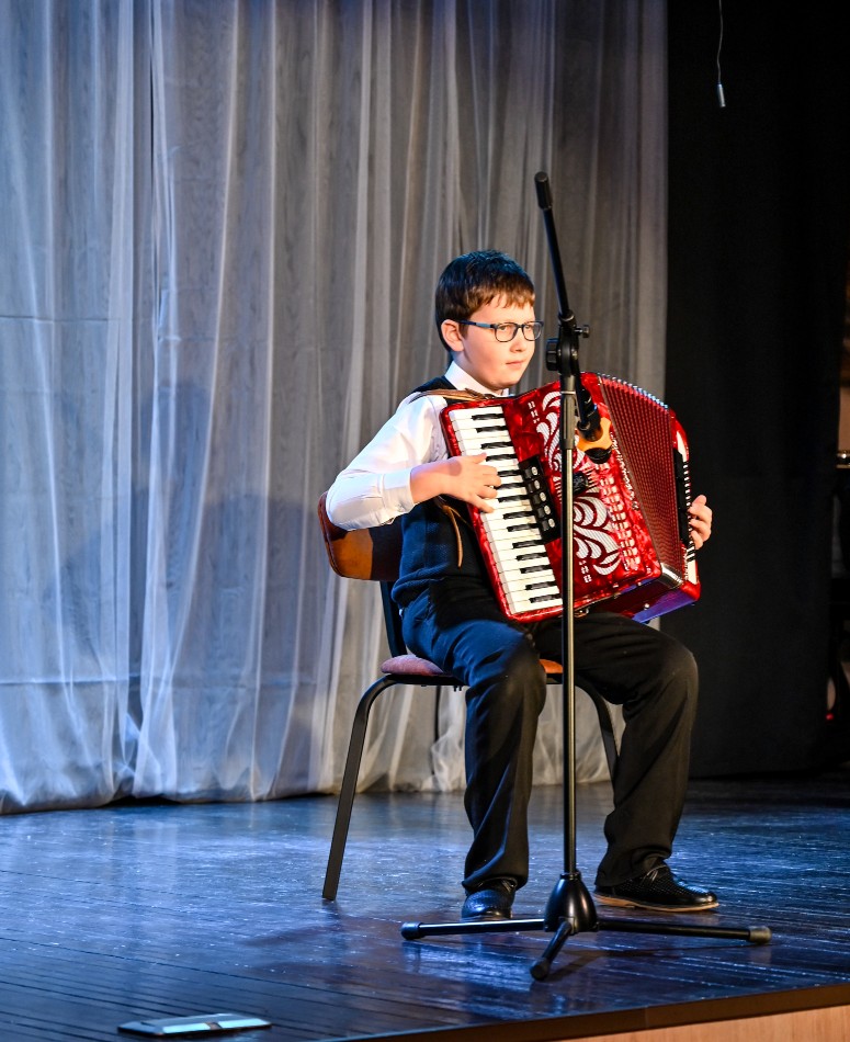 В созвучии с этими словами выступили ученики преподавателя Надежды Николаевны Вороновой по классу аккордеона. В исполнении Александра Лазаревского прозвучала «Детская сюита» Геннадия Беляева, а Илья Благов сыграл задорную «Песенку о капитане» из кинофильма «Дети капитана Гранта». Восторг зала и щедрые аплодисменты в награду!