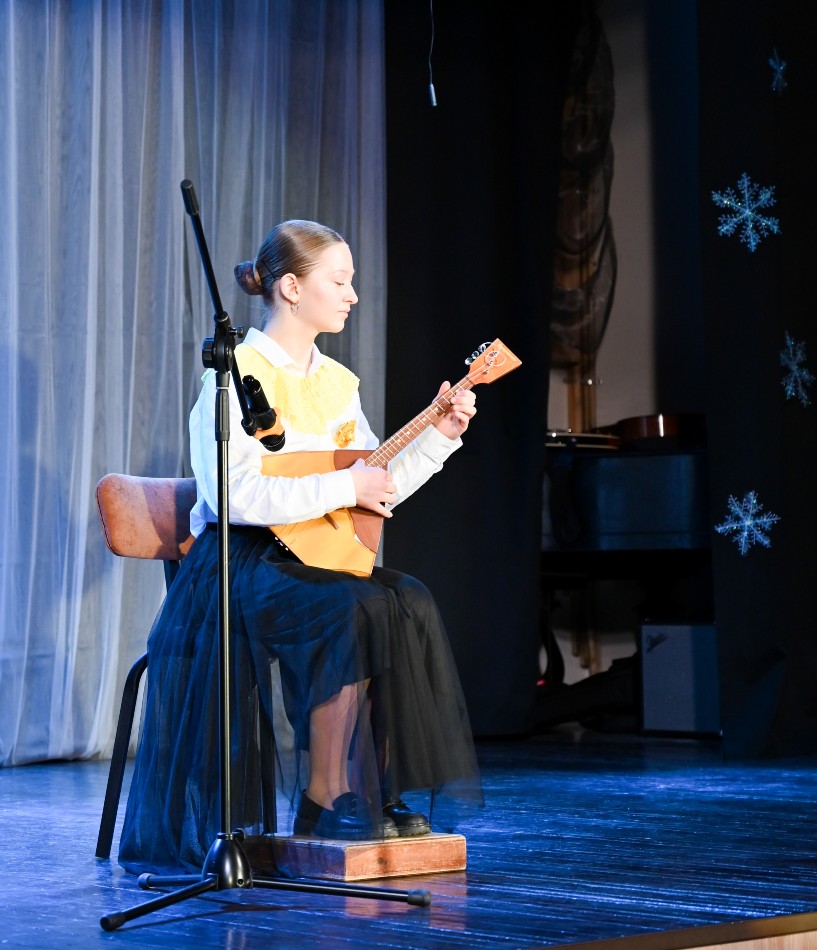 Инструменталисты музыкального отделения преподавателя Марины Евгеньевны Роговой наполнили зал яркими звуками разных мелодий. Елена Горовенко представила на балалайке зажигательный «Испанский танец» Морица Мошковского. Вера Федотченкова сыграла на домре русскую народную песню «Травушка-муравушка» в обработке Александра Цыганкова. В исполнении дуэта двух домр: Василисы Абрамовой и Веры Федотченковой прозвучала мелодия Андрея Петрова из кинофильма «Осенний марафон» (концертмейстер Екатерина Евгеньевна Поликарпова).