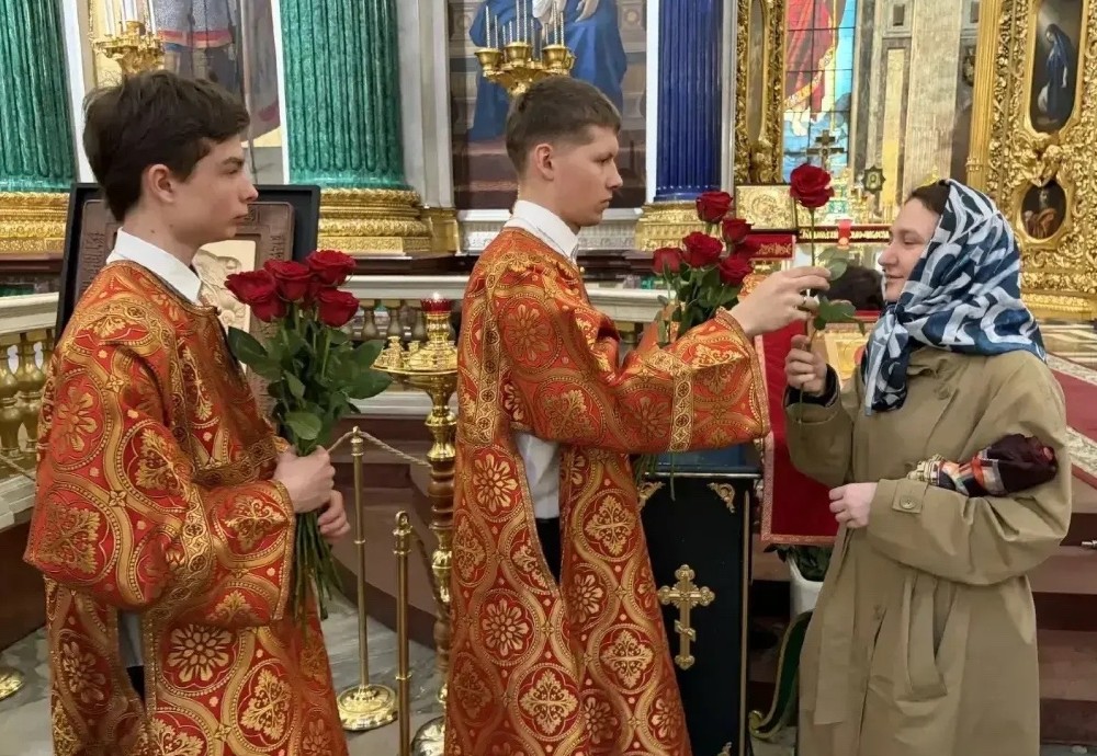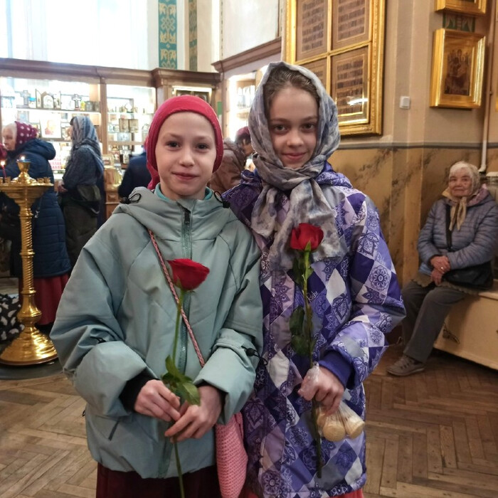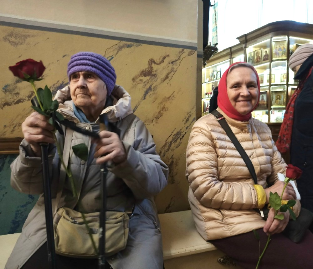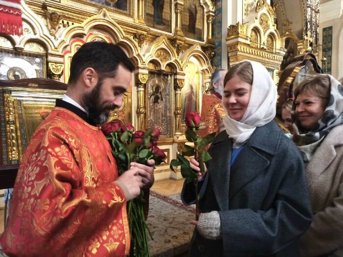 По доброй традиции, наш Благочинный поздравил всех женщин — от самых маленьких до почтенных прихожанок «серебряного возраста». Каждая из них получила в подарок прекрасную розу.