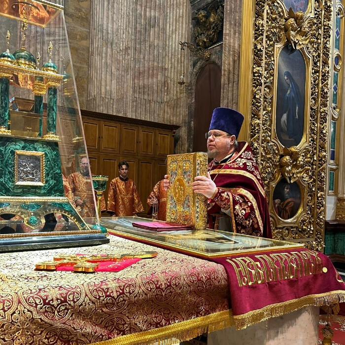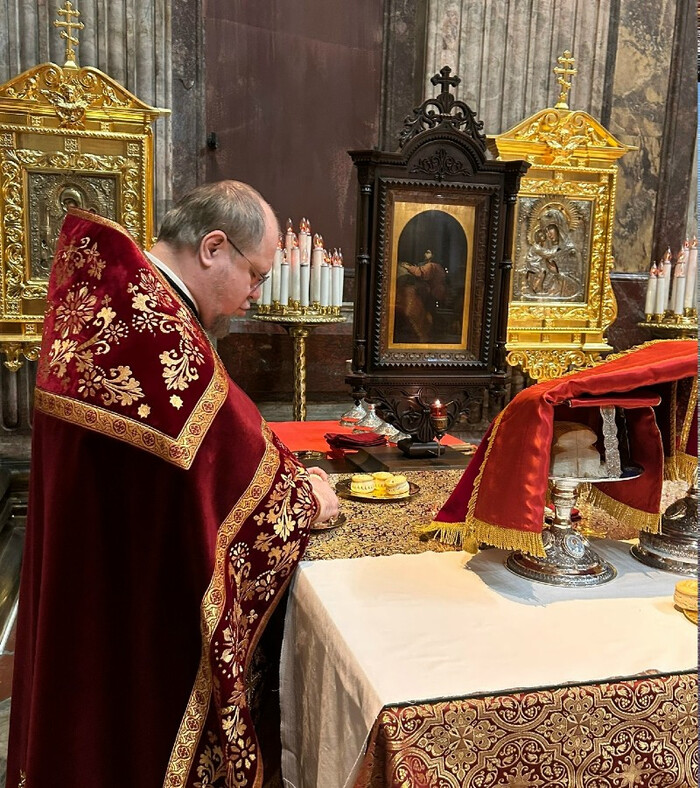 В Спасо-Парголовском храме клирики отслужили три Божественные Литургии, за которыми молились и причастились Святых Христовых Таин многие прихожане.