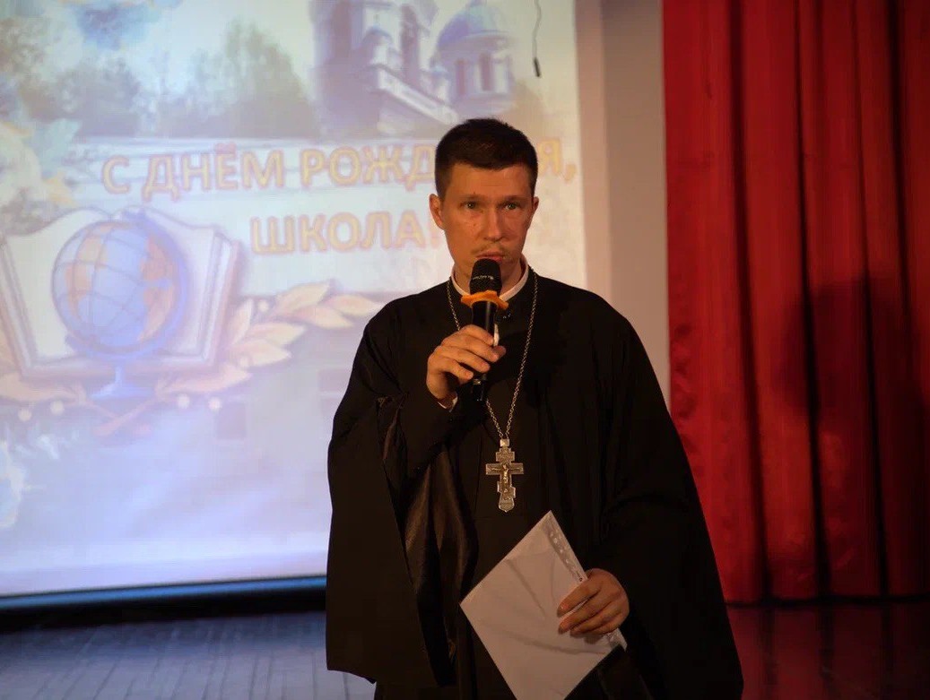 «Школе нынче 34 года! Это возраст совершеннолетия! Порадуемся такому значимому событию для нашего прихода! Возблагодарим Господа за его милости к нам! Теплым концертом поздравим школу с Днем Рождения! Много учителей трудилось здесь в течение этих лет, много учеников вышло из этих стен во взрослую жизнь. Вам, нынешнем ученикам, еще предстоит много открыть, многому научиться. И то, что дает Вам сейчас школа, вы в полной мере пока не сможете оценить, но, несомненно, придете к этому пониманию позже. Как оценили этот вклад выпускники 90-х , которые возвращаясь сюда, под эти своды, ведут к нам своих детей и радуются, что школа продолжает свое жительство. Будем дорожить прекрасным наследием, которое нам досталось. Постараемся приемственно передавать знания веры и образ жизни по вере. Будем учить и учиться, жить и трудиться, возрастать в звании христианин, а затем уже семьянин и гражданин, мастер своего дела, что и будет являться признаками цельной, гармоничной личности. Будем руководствоваться и вдохновляться примером святого праведного Иоанна Кронштадтского! А сейчас порадуем друг друга и порадуемся праздничному концерту, подготовленному как учениками «Родника», так и гостями праздника, хореографическими коллективами «Вираж» и «Каазер», приехавшими к нам из поселка Сертолово».