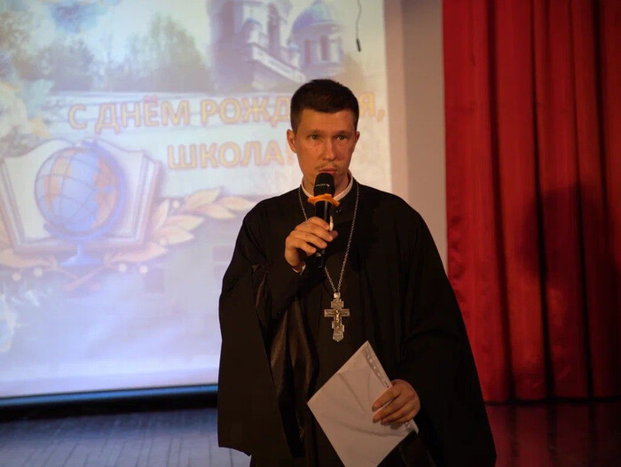 От лица протоиерея Романа Ковальского, настоятеля Спасо-Парголовского храма и директора школы, к собравшимся обратился протоиерей Александр Зелененко: