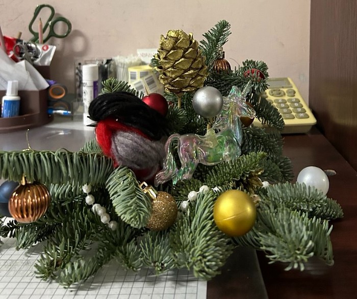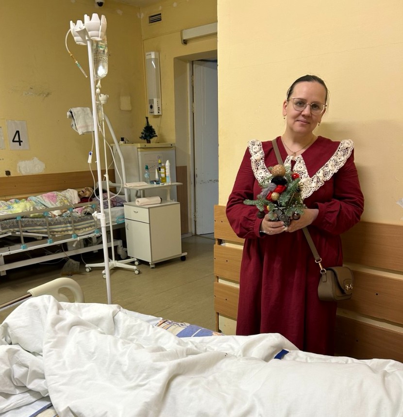 Еловые шишки, блестящие шары, хрустальные гирлянды, снегири, родившиеся из разноцветной пряжи, и поселившиеся на зелёных ветках в больничных палатах — всё это вызывает радостные эмоции и улыбки у пациентов и медицинских сотрудников.