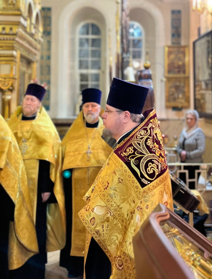 31 декабря 2025 года протоиерей Роман Ковальский, ключарь Исаакиевского собора, настоятель Спасо-Парголовского храма и храма Всех Святых, в земле Санкт-Петербургской просиявших, возглавил вечернее богослужение и Новогодний молебен в Спасо-Парголовском храме.