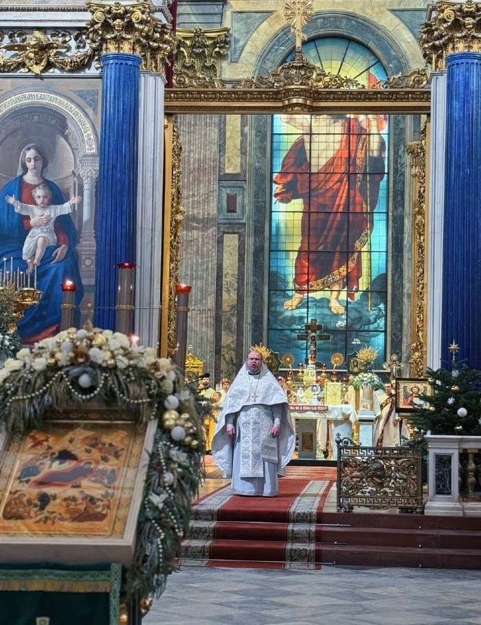 В ночь с 6 на 7 января 2026 года, в праздник Рождества Господа Бога и Спаса нашего Иисуса Христа, протоиерей Роман Ковальский, настоятель Спасо-Парголовского храма и храма Всех Святых, в земле Санкт-Петербургской просиявших, возглавил Божественную Литургию в Исаакиевском соборе.