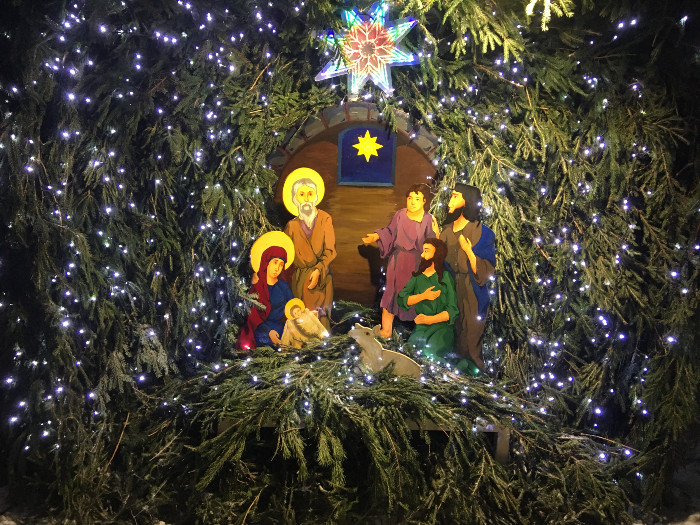Около храма взрослых и детей ждал большой красивый вертеп, с любовью изготовленный нашими прихожанами.