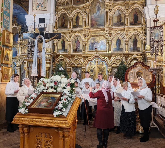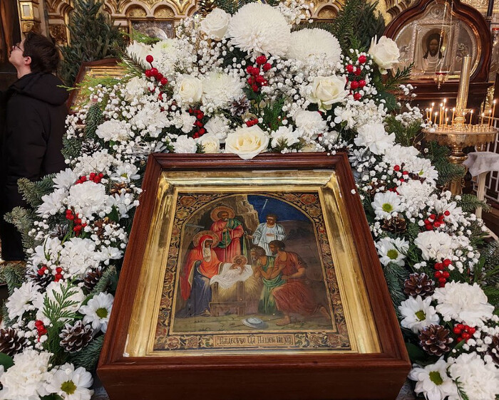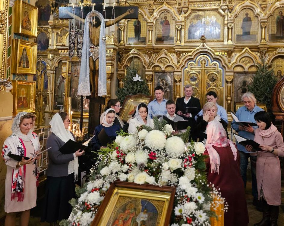 Весь день Рождества Христова священники Спасо-Парголовского храма служили молебны, а хоры храма пели колядки.