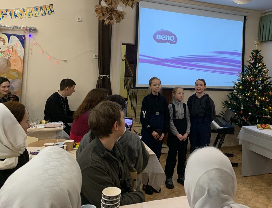 После ночной Литургии в школе Спасо-Парголовского храма состоялось праздничное чаепитие для прихожан. Слова благодарения Господу, непридуманные истории о чудесах Божиих в семье наших прихожан, прославление Господа под гитару, колядки в исполнении о. Ярослава и о. Сергия, поучительные наставления о. Александра, остроумные комментарии о. Дионисия — так приход Спасо-Парголовского храма славил родившегося Христа.