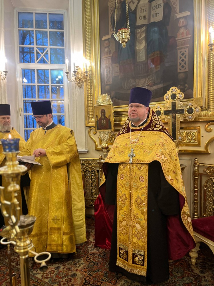 Вечером Прощеного воскресенья богослужение в Спасо-Парголовском храме возглавил благочинный Выборгского округа протоиерей Роман Ковальский.
