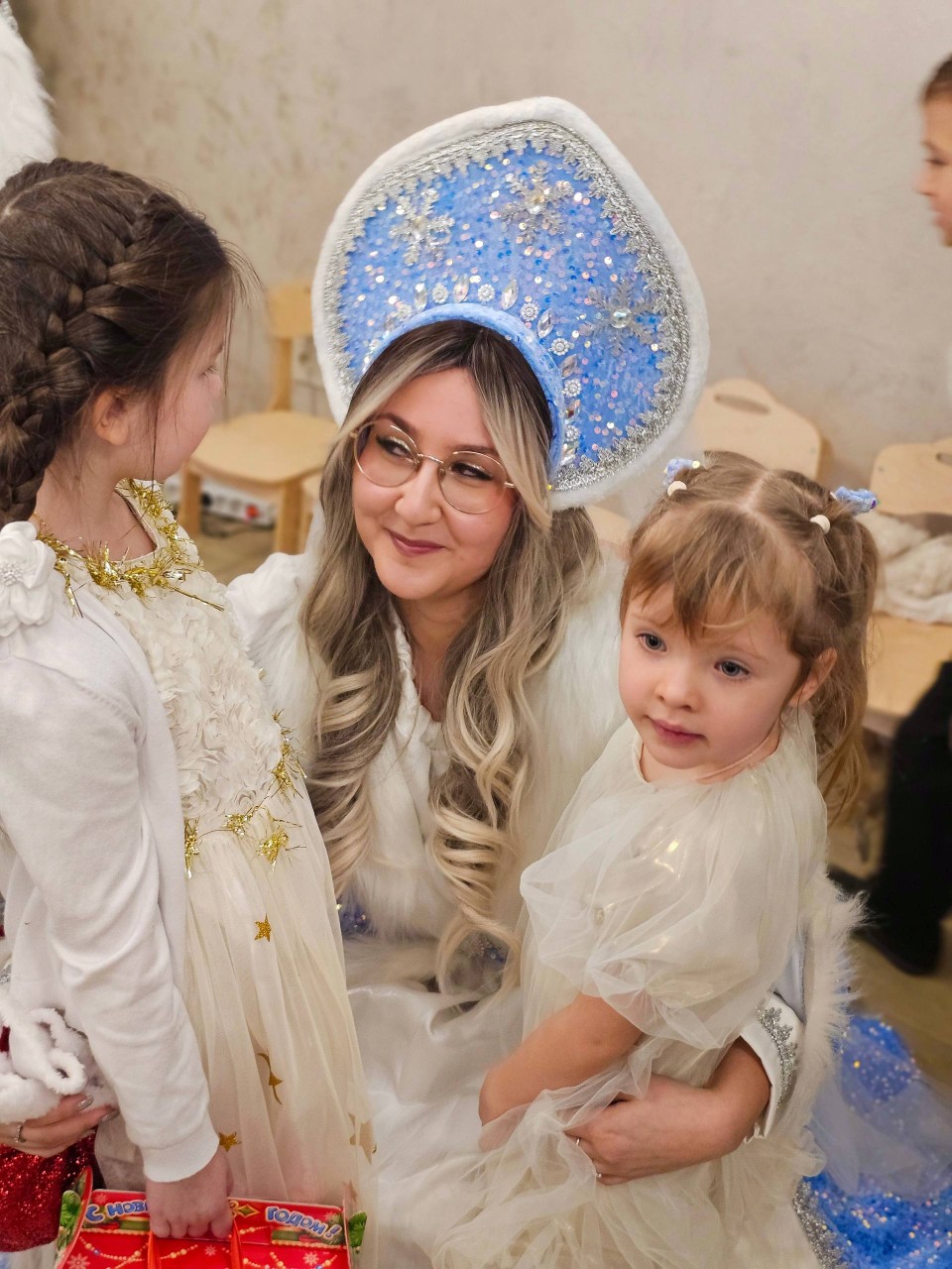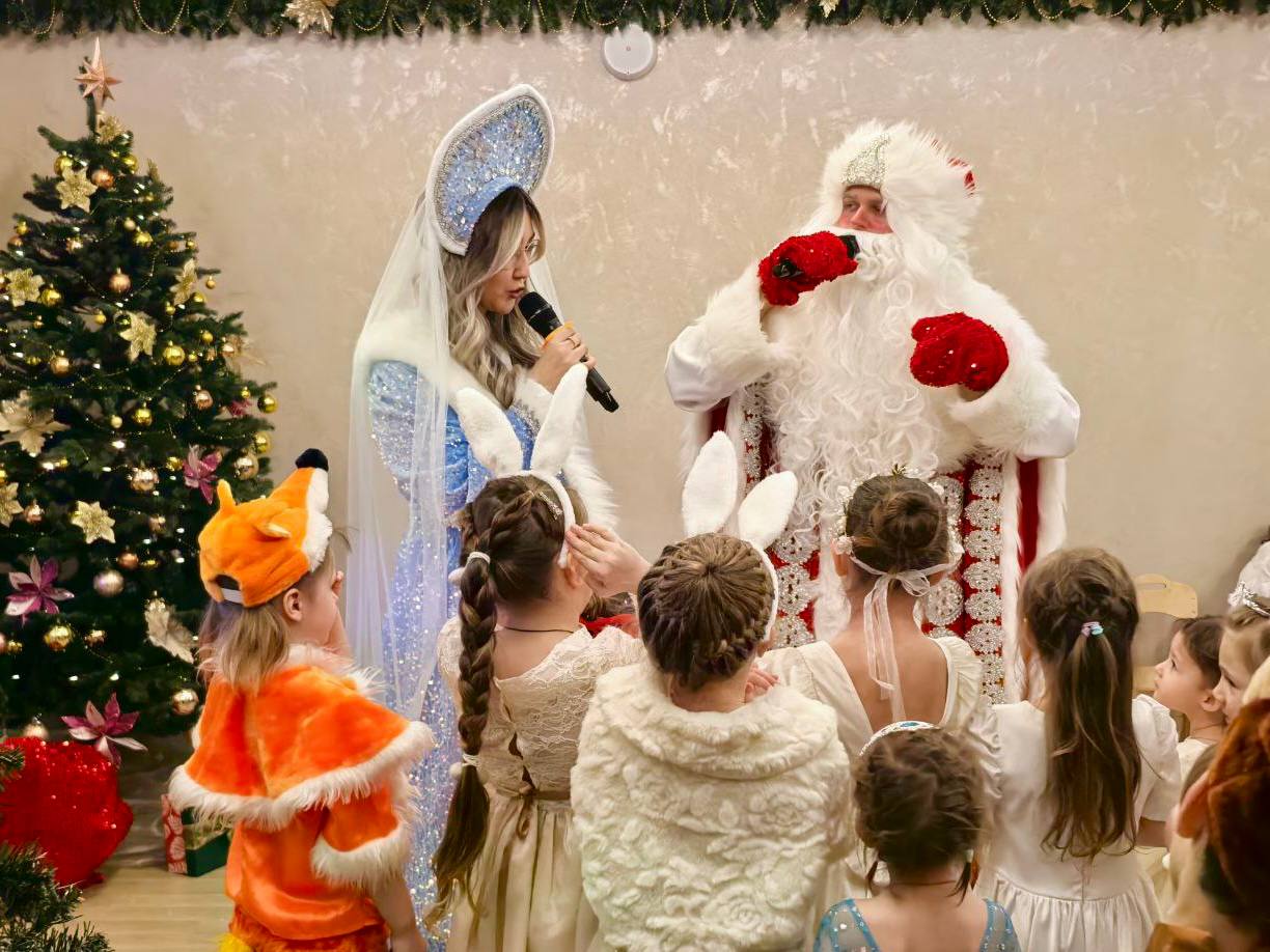 Красиво украшенный зал, елка в сияющих гирляндах и шарах — всё вокруг было по-особенному торжественным и нарядным.