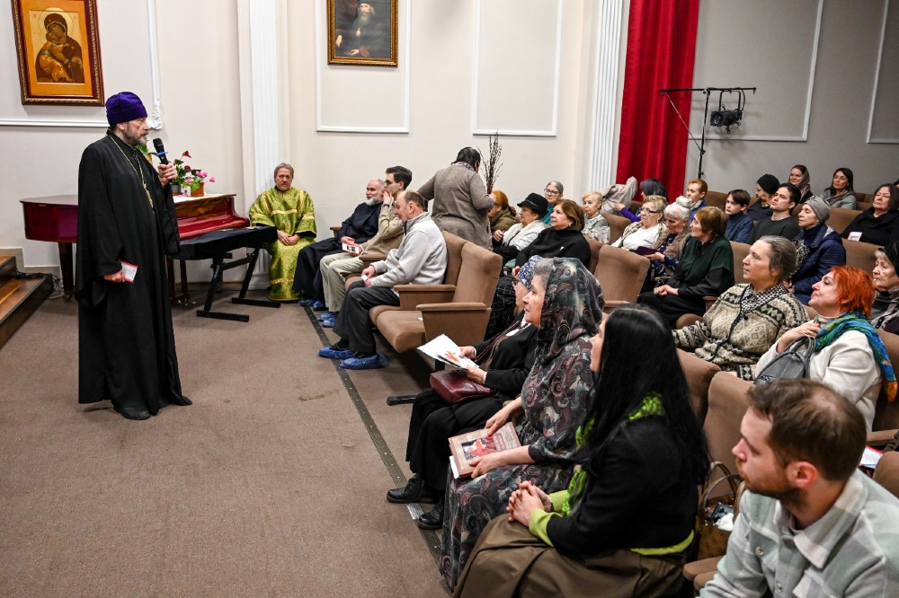 В день юбилея, после литии на могиле батюшки, актовый зал церковной школы превратился в уютную гостиную большой семьи. Протоиерей Сергий Зорин, духовный сын отца Михаила, открыл вечер словами, полными сыновней теплоты.