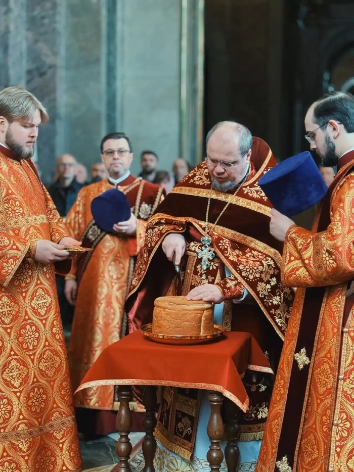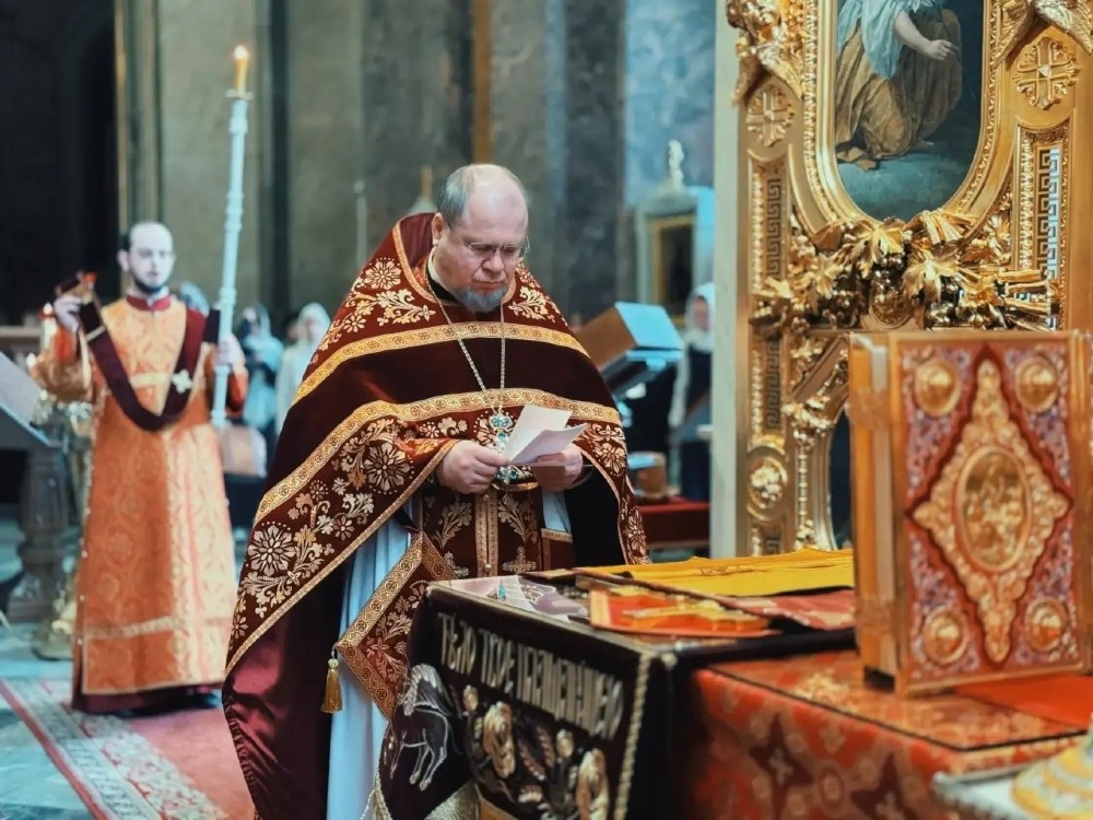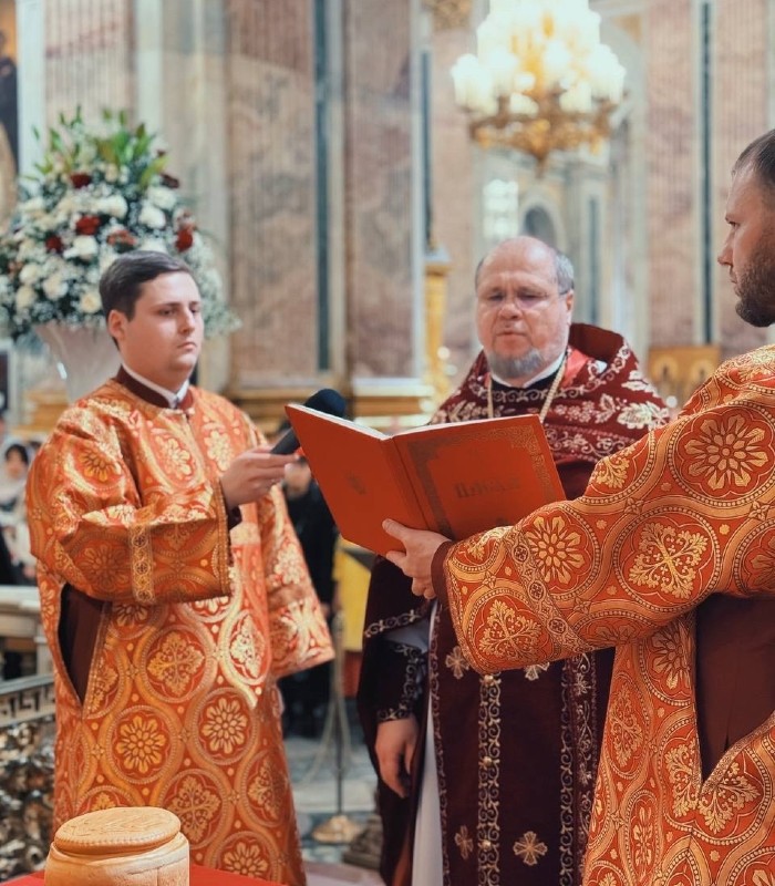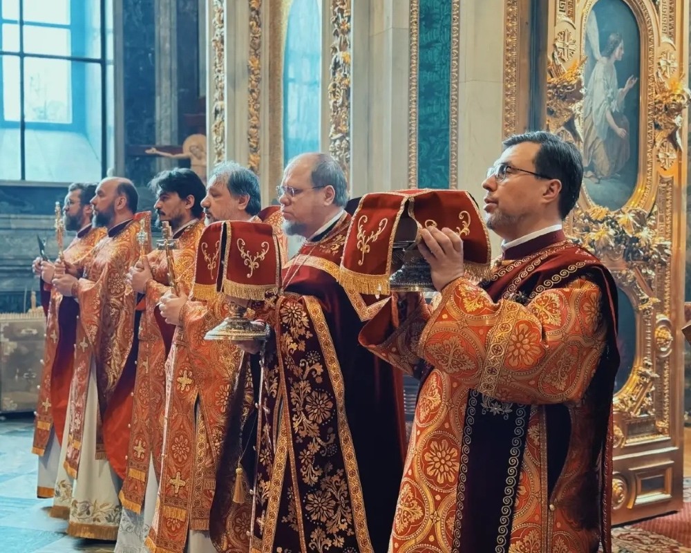18 апреля 2026 года, в субботу Светлой седмицы, благочинный Выборгского округа протоиерей Роман Ковальский возглавил Божественную Литургию в Исаакиевском соборе.