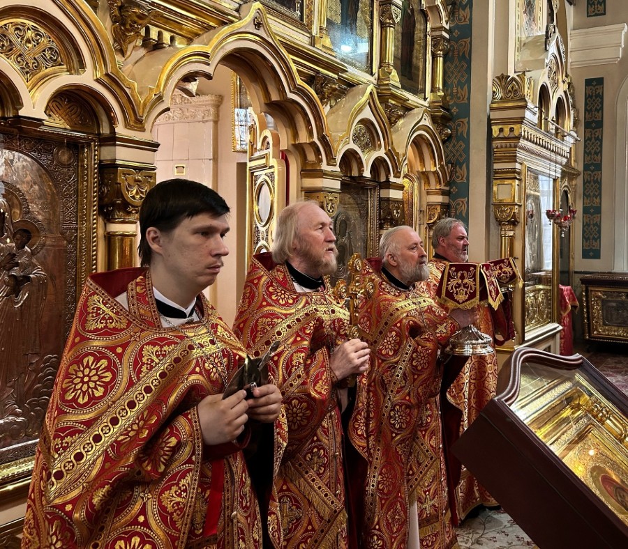 В Спасо-Парголовском храме в этот торжественный день клирики отслужили две Божественные Литургии.