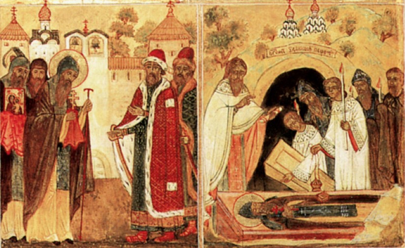 Преемником преподобного Ионы стал иеромонах Мисаил, построивший на горе храм и кельи для насельников обители. Эти деревянные постройки были сожжены при нападении лифляндцев. Но при их попытке разграбить и осквернить пещерный Успенский храм, на кощунников из алтаря сошел огонь. Они в страхе прокинули обитель.