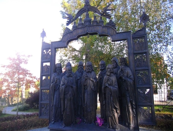 Всех приходящих в Свято-Успенскую обитель, встречают Псково-Печерские старцы, памятник которым установлен рядом с входом в монастырь.