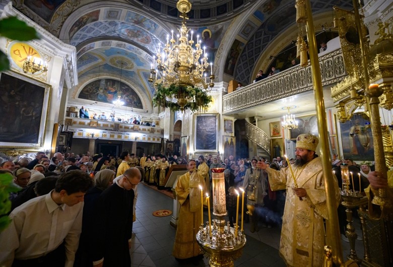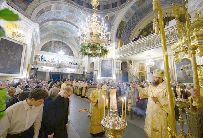 Вечером мы отправились в Михайловский собор на Всенощное бдение. Службу возглавил митрополит Псковский и Порховский Матфей.