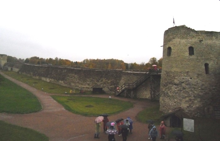 А затем, после трапезы, отправились в древний город Изборск. Этот старейший русский город по преданию основан сыном новгородского князя Гостомысла – Словеном и изначально назывался Словенском. Город был переименован в Изборск по имени сына князя Словена – Избора. Хотя летописная история города начинается с 862 года, первые поселения славян-кривичей на этих землях датируются VII-VIII в. А освоение земель началось еще раньше. В «Повести временных лет» описано событие призвания на Русь в 862 году варяжских князей, один из которых, Трувор, сел в Изборске. Древний Изборск постоянно подвергался нападениям войск Тевтонского, а затем Ливонского ордена. Согласно летописям только в период с 1030 по 1233 г. состоялось 20 крупных сражений. Несмотря на это, город расширялся и в 1303 году Изборск перенесен на Жеравью гору, где была возведена новая крепость, которую до 1581 года ни разу не захватил враг. В 1581 году Изборск не выдержал осады войска польского короля Стефана Батория, и грозная крепость была взята неприятелем. С XVIII века граница русских земель отодвинулась на запад. Изборск превратился в купеческий провинциальный город.