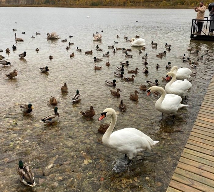 Ненастная погода воспрепятствовала нам посетить Словенские ключи. Но самые стойкие из паломников все же побывали там, чтобы испить воды из древних источников, пробивающихся через слои глины и известняка, и полюбоваться на лебедей, обитающих в Городищенском озере.
