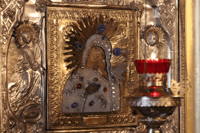 Мы посетили Никольский собор, не закрывавшийся с момента его освящения, и поклонились его святыням, среди которых почитаемая чудотворная икона Изборской Божией Матери.