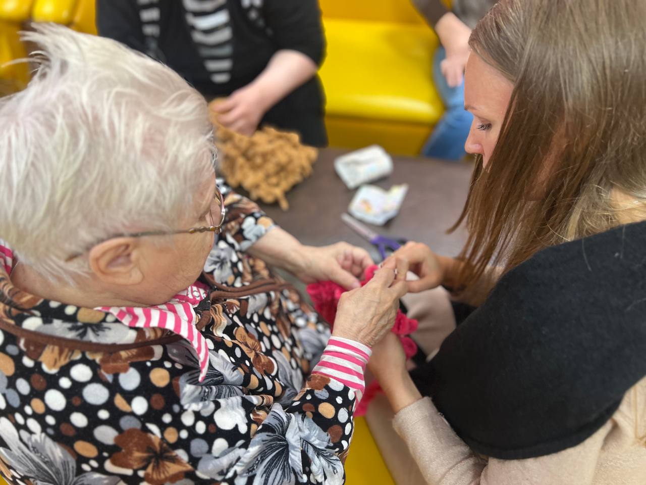 Что хочется делать осенью? Утепляться, заниматься уютным рукоделием и спокойно беседовать. Так и было сегодня на мастер-классе в доме престарелых.