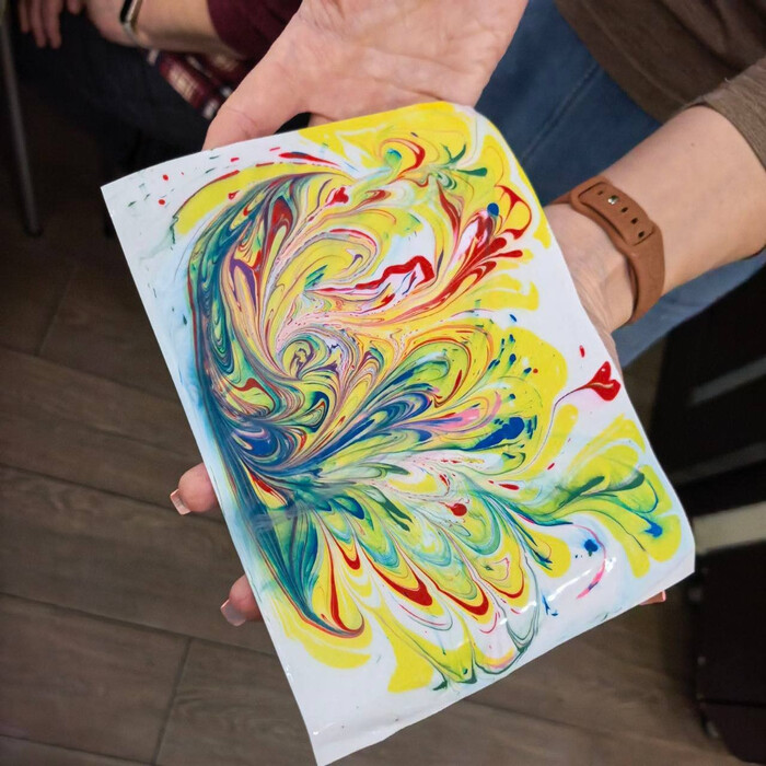 Как прошло первое мероприятие? Замечательно! Рисовали на воде в технике эбру, пили чай с пахлавой и обсуждали планы на будущее.