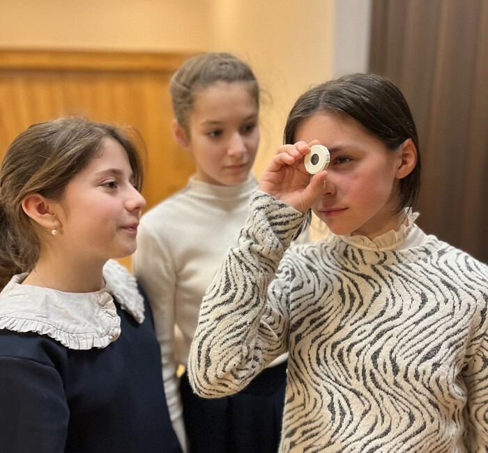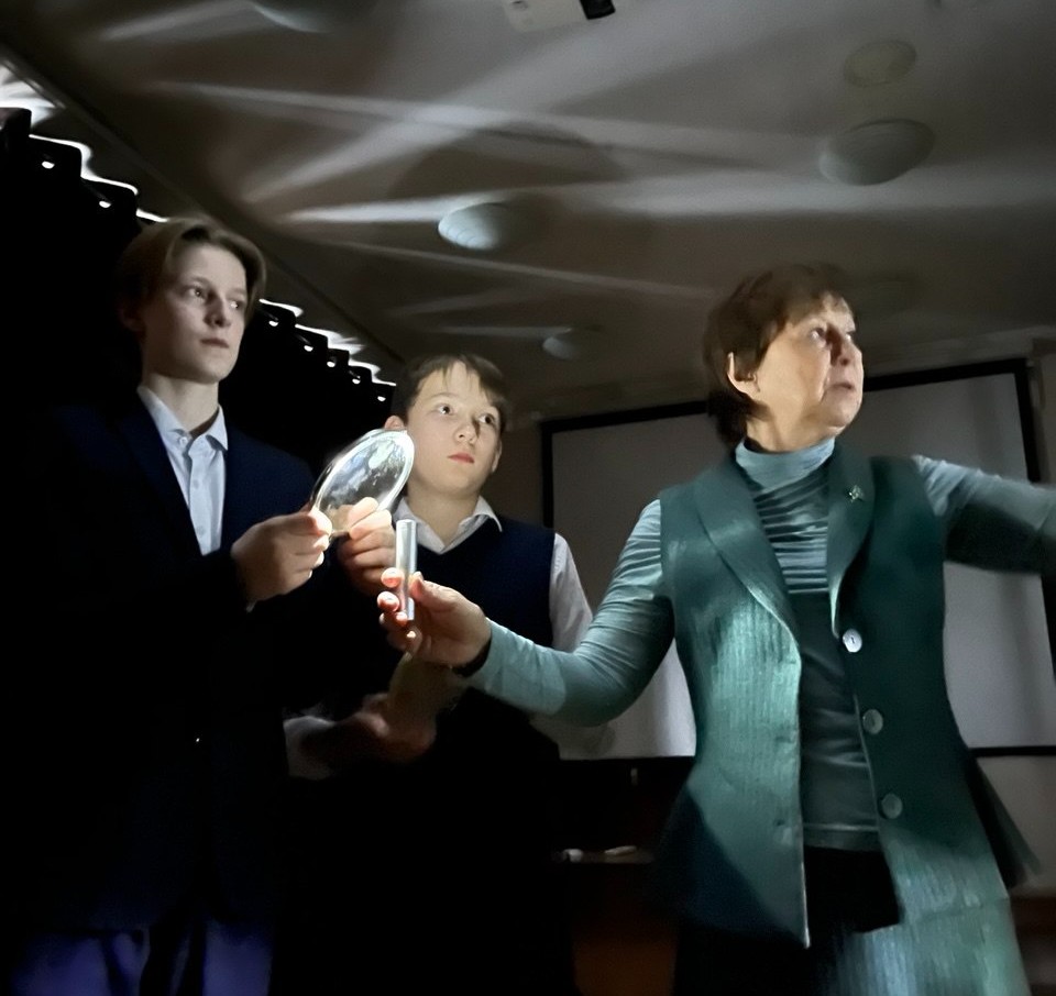 На увлекательных физических переменах все классы от мала до велика поочередно побывали в специально организованном пространстве. Ребята узнали: о свойствах звука и света, о том, как распространяются лучи, наглядно увидели, что образуется в месте, куда не падает свет, догадались, почему мы можем наблюдать радугу-спектр не только в небесах, пополнили лексические шкатулки диковинные словами: «дисперсия», «интерференция», «дифракция», запомнили, что свет лучше всего распространяется в вакууме, а звука там нет…