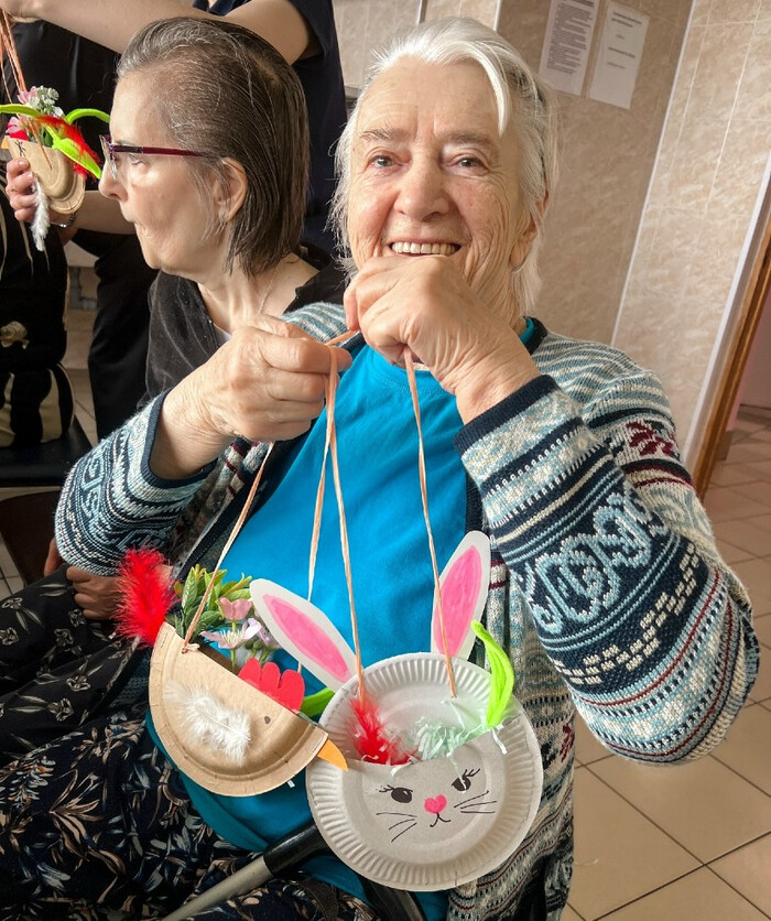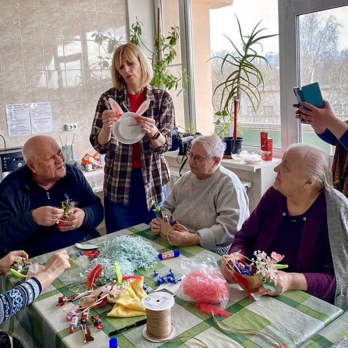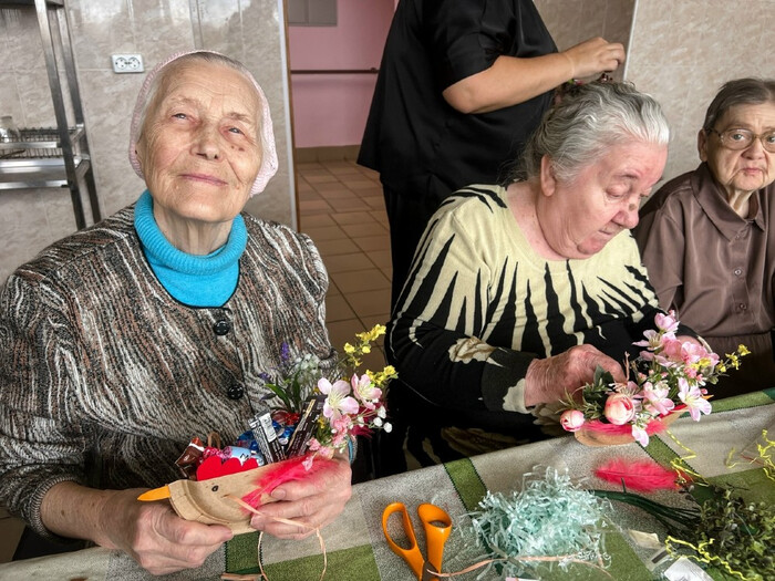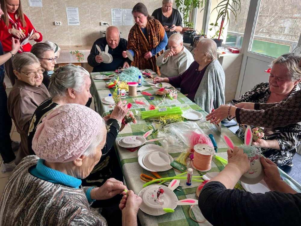 Апрельский мастер-класс в Доме престарелых и инвалидов начался с радостного приветствия «Христос воскресе!»
