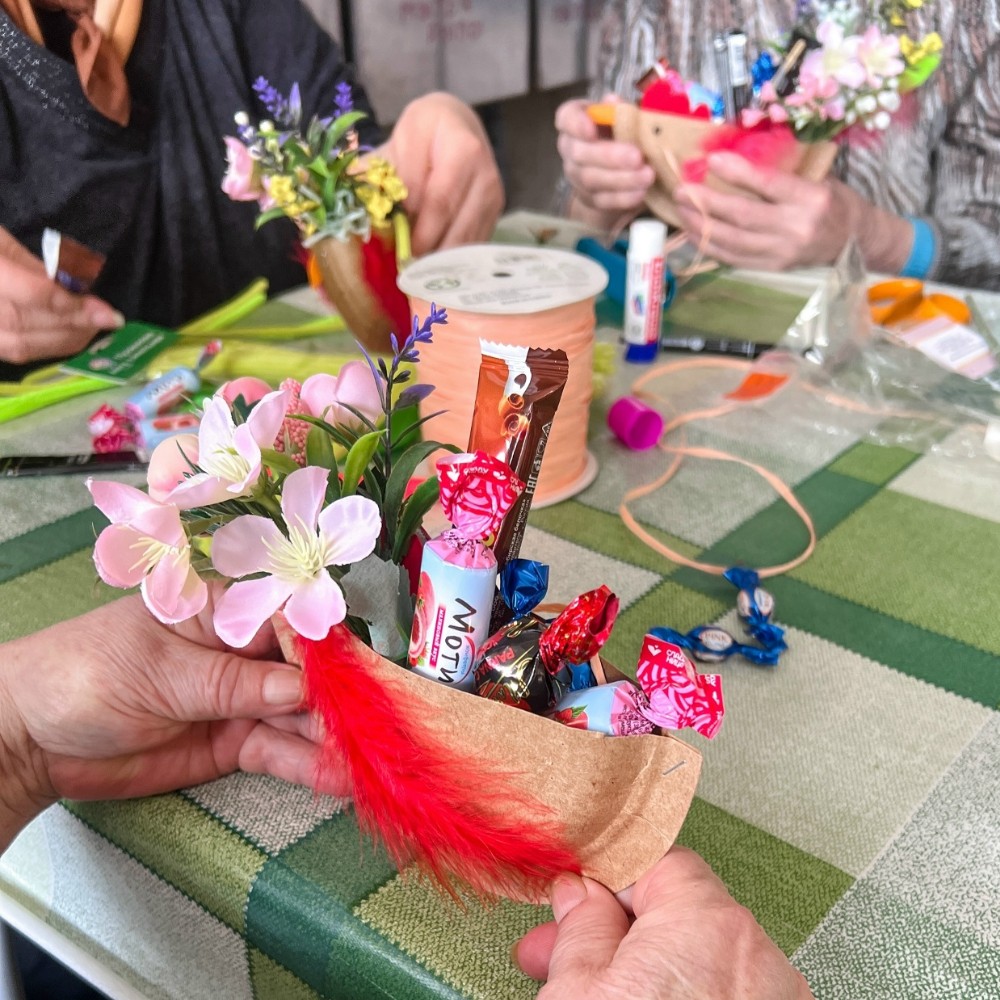 Волонтёры решили поздравить наших творческих бабушек, дедушек и не просто подарить подарки, а оформить их вместе, своими руками.