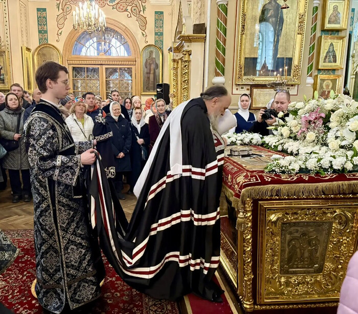 Во время богослужения состоялись награждения: правом служения при отверстых Царских вратах были отмечены протоиереи Александр Зелененко и Сергий Зорин. Наперсным крестом награжден иерей Виталий Капралов, а камилавкой — иерей Сергий Ковалев. Также церковные награды получили сотрудники храма: Ангелина Борисова, Людмила Алексеева, Людмила Харчевникова и Иван Патров. Поздравляем!
