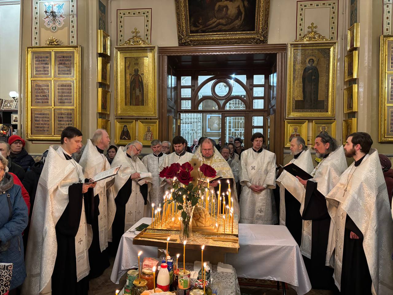 В Спасо-Парголовском храме накануне родительской субботы вечернее заупокойное богослужение — парастас — возглавил протоиерей Роман Ковальский, ключарь Исаакиевского собора, настоятель Спасо-Парголовского храма и храма Всех Святых, в земле Санкт-Петербургской просиявших.