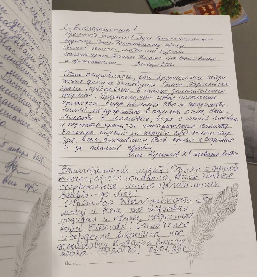 Нам было очень приятно услышать от гостей слова признательности в адрес нашего благочинного протоиерея Романа Ковальского и всех, кто трудился над созданием музея. Краеведы отметили, что в каждом экспонате чувствуется не только высокий профессионализм, но огромная любовь и частичка души.