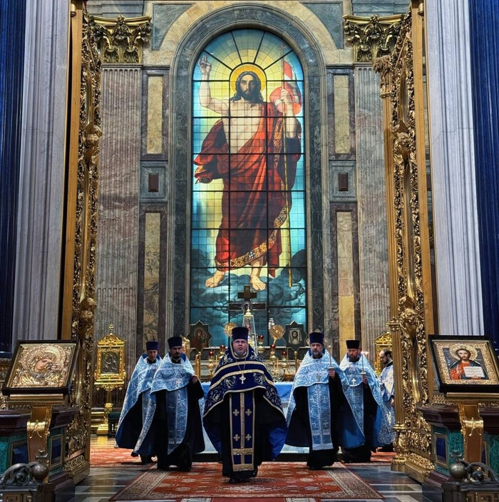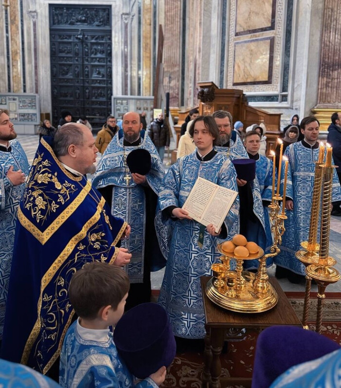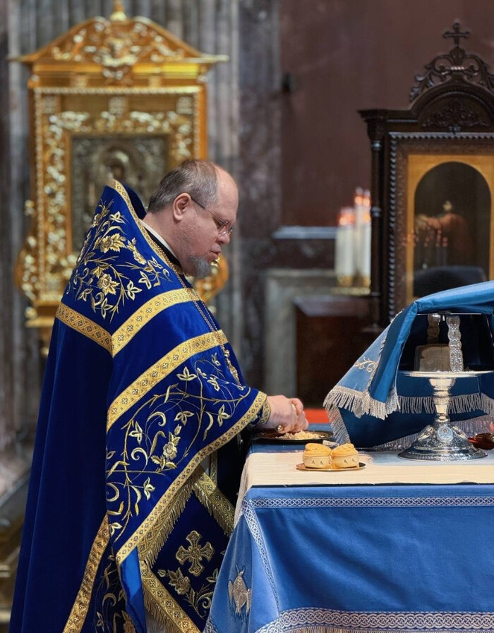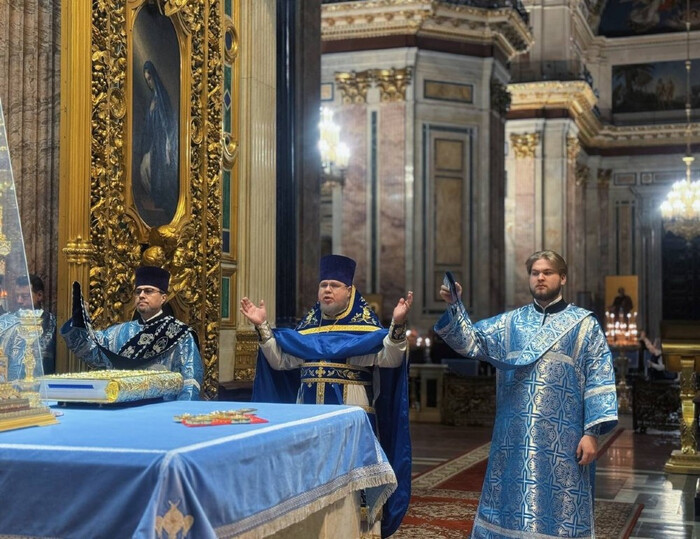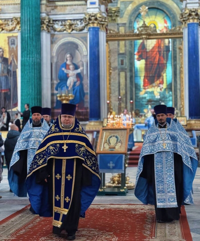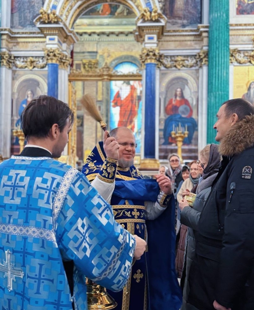 В этот торжественный день праздничные богослужения в Исаакиевском соборе возглавил благочинный Выборгского округа протоиерей Роман Ковальский.