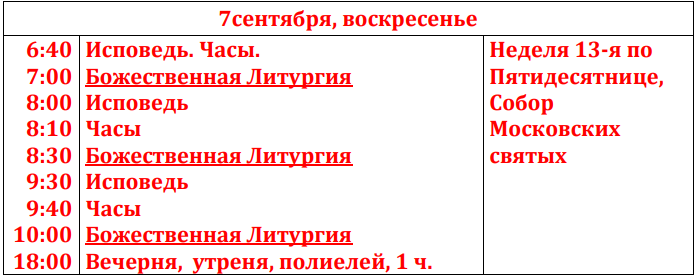 Расписание богослужений