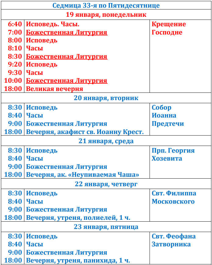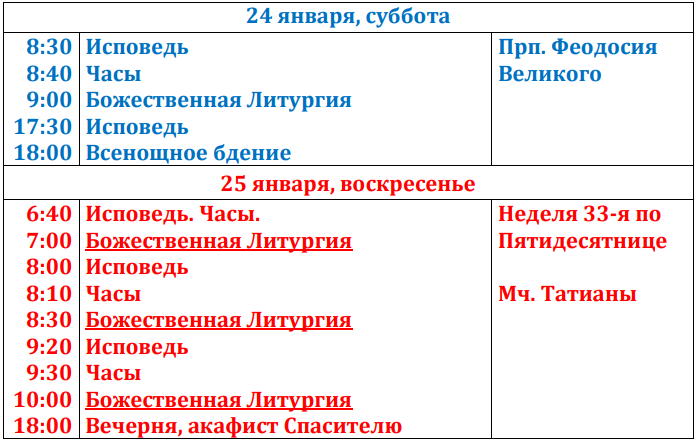 Расписание богослужений