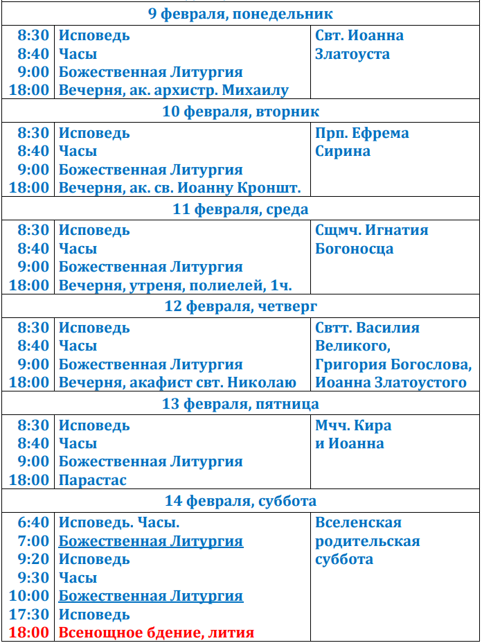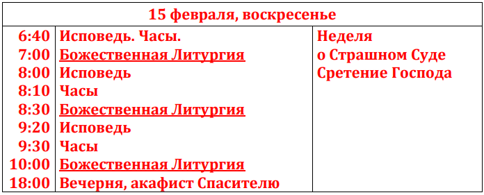 Расписание богослужений