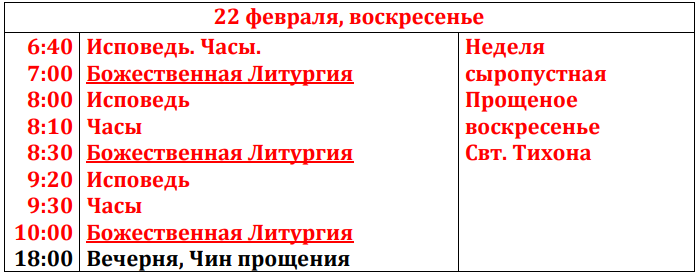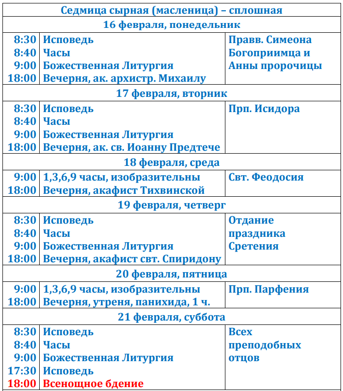 Расписание богослужений