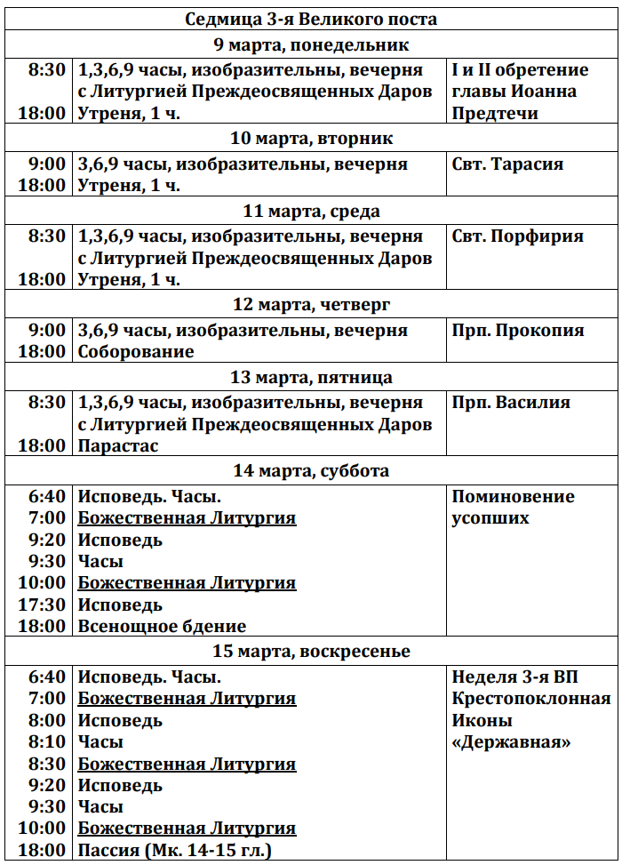 Расписание богослужений