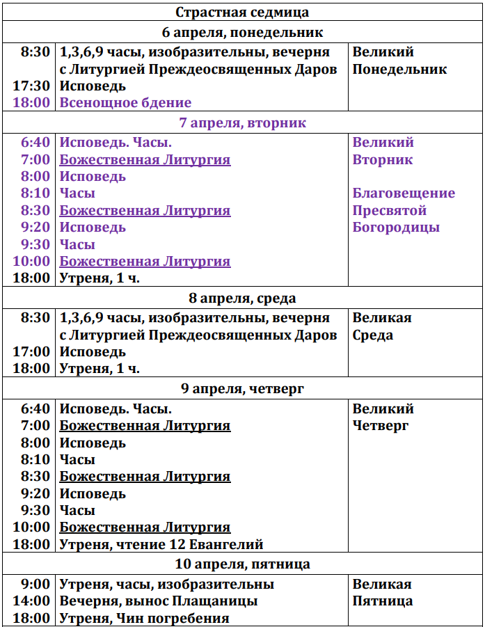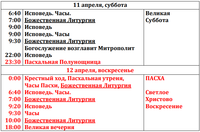 Расписание богослужений