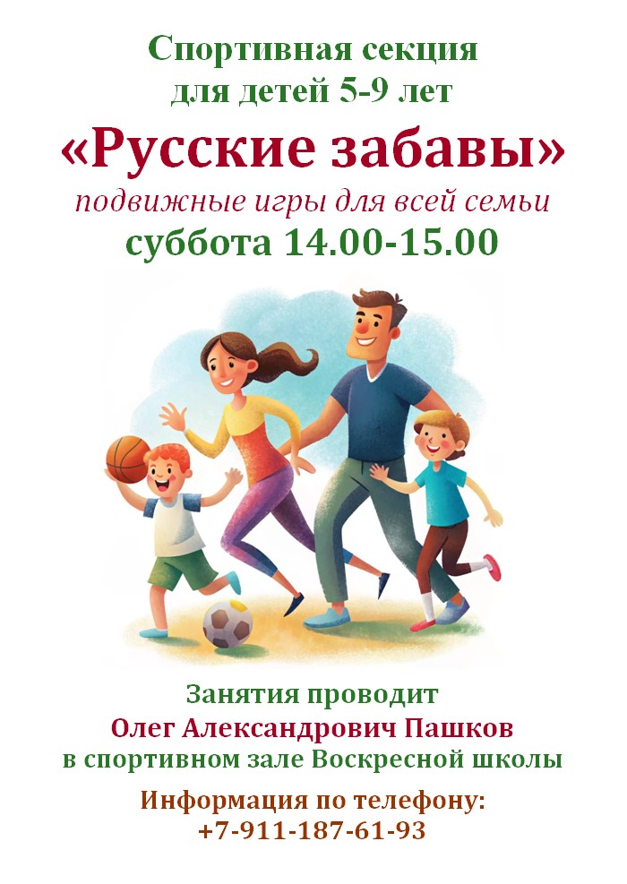 "Русские забавы" Спортивные секции 30.09.2025 1119 ВСЕ СПОРТИВНЫЕ СЕКЦИИ при Спасо-Парголовском храме Детские вероучительные группы Кружки и творческие коллективы Воскресная школа для взрослых