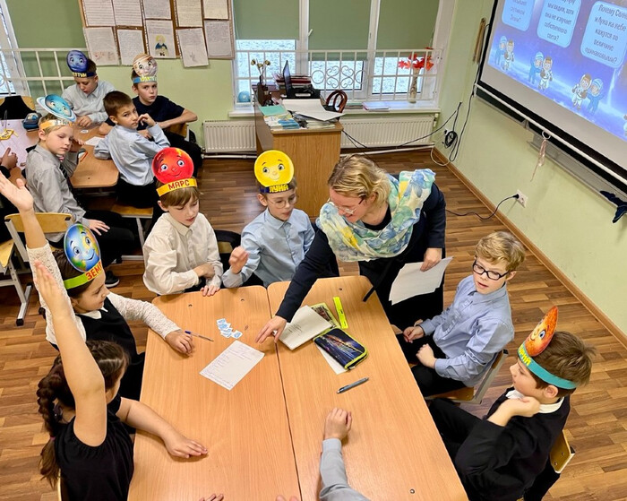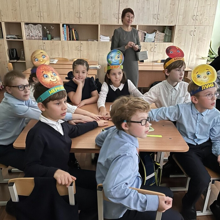 Интерактивная игра «Космос» увлекла ребят 2-4 классов на целый урок, дала возможность как почерпнуть новые знания о чудесной и еще до конца не изведанной системе, так и проявить свою эрудицию, продемонстрировать отменную осведомленность и подготовку! Увлеченность и компетентность ведущей, дифференцированный подход к выбору заданий для каждой возрастной группы и командная форма работы превратили урок в увлекательный полет от станции «Звездная планета» и до станции «Планета Памяти».